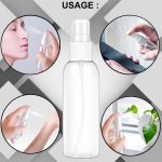 Package Content :- 2 Bottle of 100ml, 2 fine mist spray pump with transparent protector cap, no drips or leaks, make sure you carry safe and convenient great for travel, cleaning, gardening, skin care.