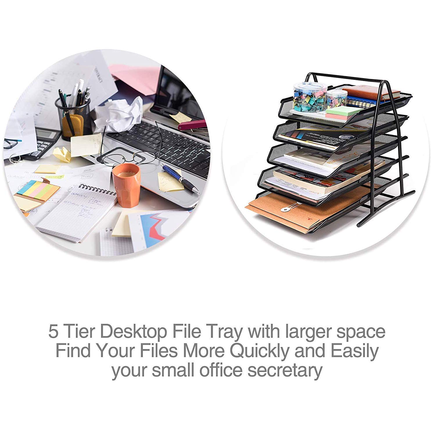 Use your desk space more efficiently by keeping your important documents categorized and off your desk or floor with our 5-level metal mesh file organizer to help you stay organized