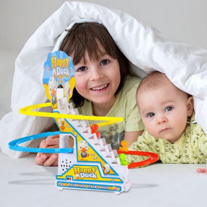 Storio Duck Track Toys For Kids – Small Ducks Stair Climbing Toys For Kids , Escalator Toy with Lights and Music – 3 Duck Included.