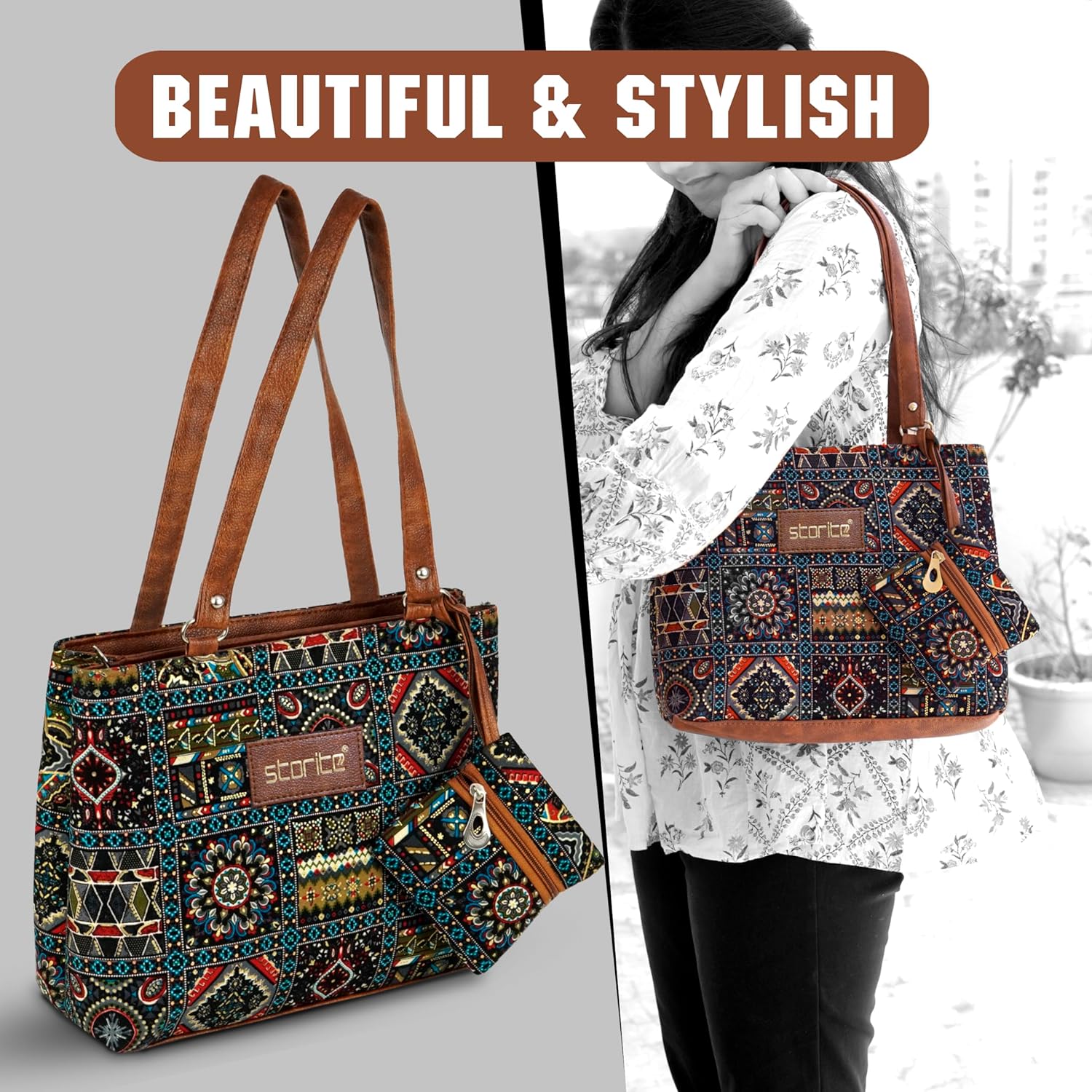 Customers find the handbag has a good appearance and quality. They appreciate the vibrant and cheerful print, as well as the spacious design with multiple pockets. The bag offers good value for money, though opinions differ on the size.