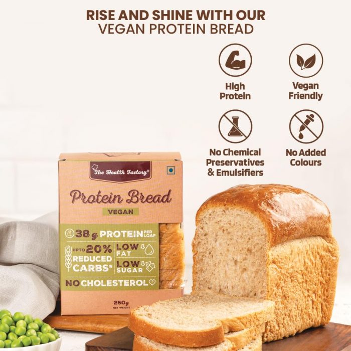 Bread Badlo, Aadat Nahi! Crafted for vegan-conscious, Vegan Protein Bread elevates your taste experience & simplifies protein intake. * Packed with 7.9g of protein in two slices, thanks to its dynamic Protein Blend of Pea, Soy, and Lentil proteins * Delicious and proteinaceous, with no chemical preservatives * Perfect for a healthier lifestyle with up to 20% Reduced Carbs