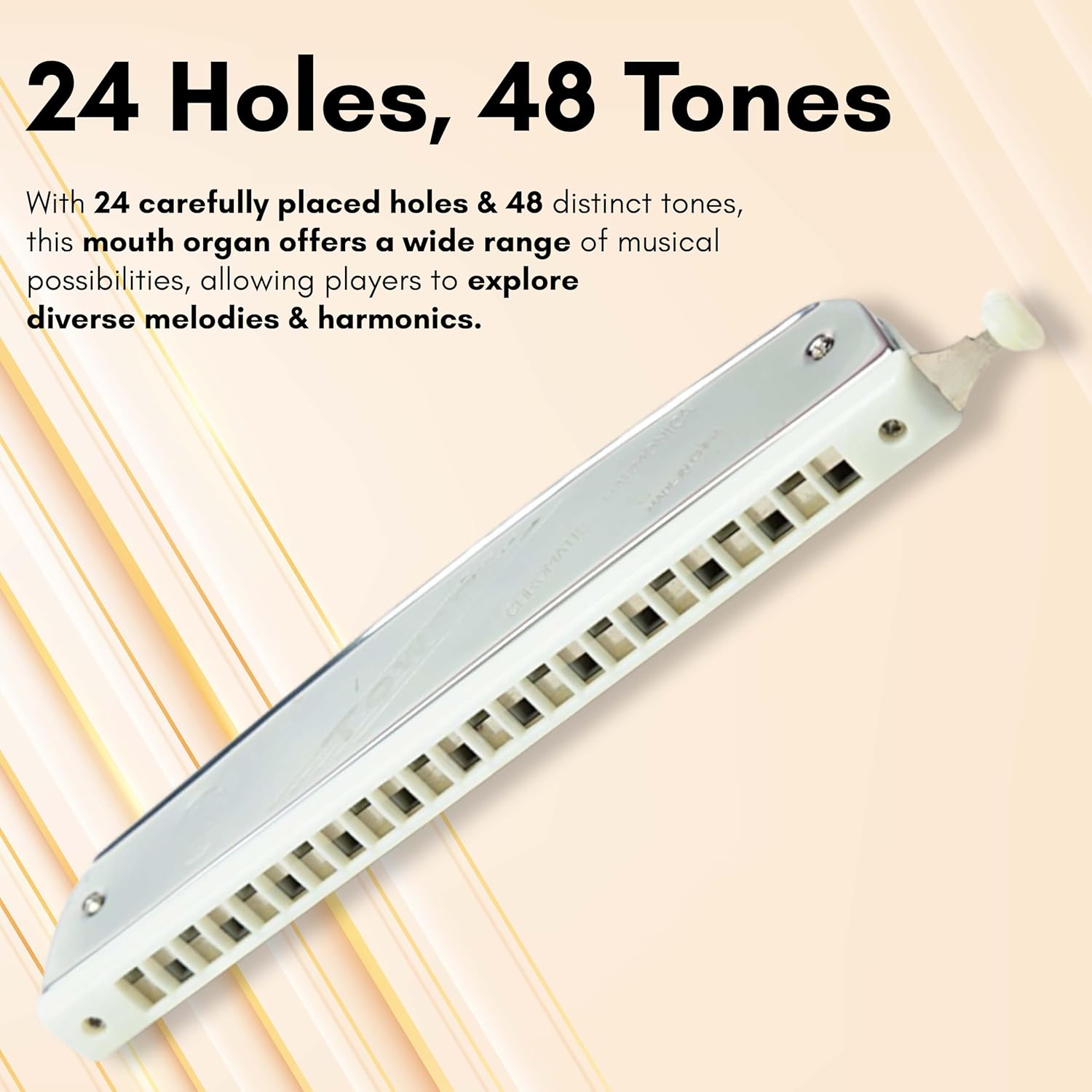 This Harmonica has 24 Holes and a Total of 48 Tones with a Button Activated Slide Lever