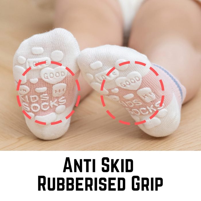 Toddler anti slip socks have amazing grip on slippery surfaces, so kids don’t slide all over the place when they trying to stand!