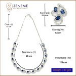 Generic Name : Rhodium-Plated with Silver-Toned Blue and White Cubic Zirconia & American Diamond studded Necklace and Drop Earrings Jewellery Set