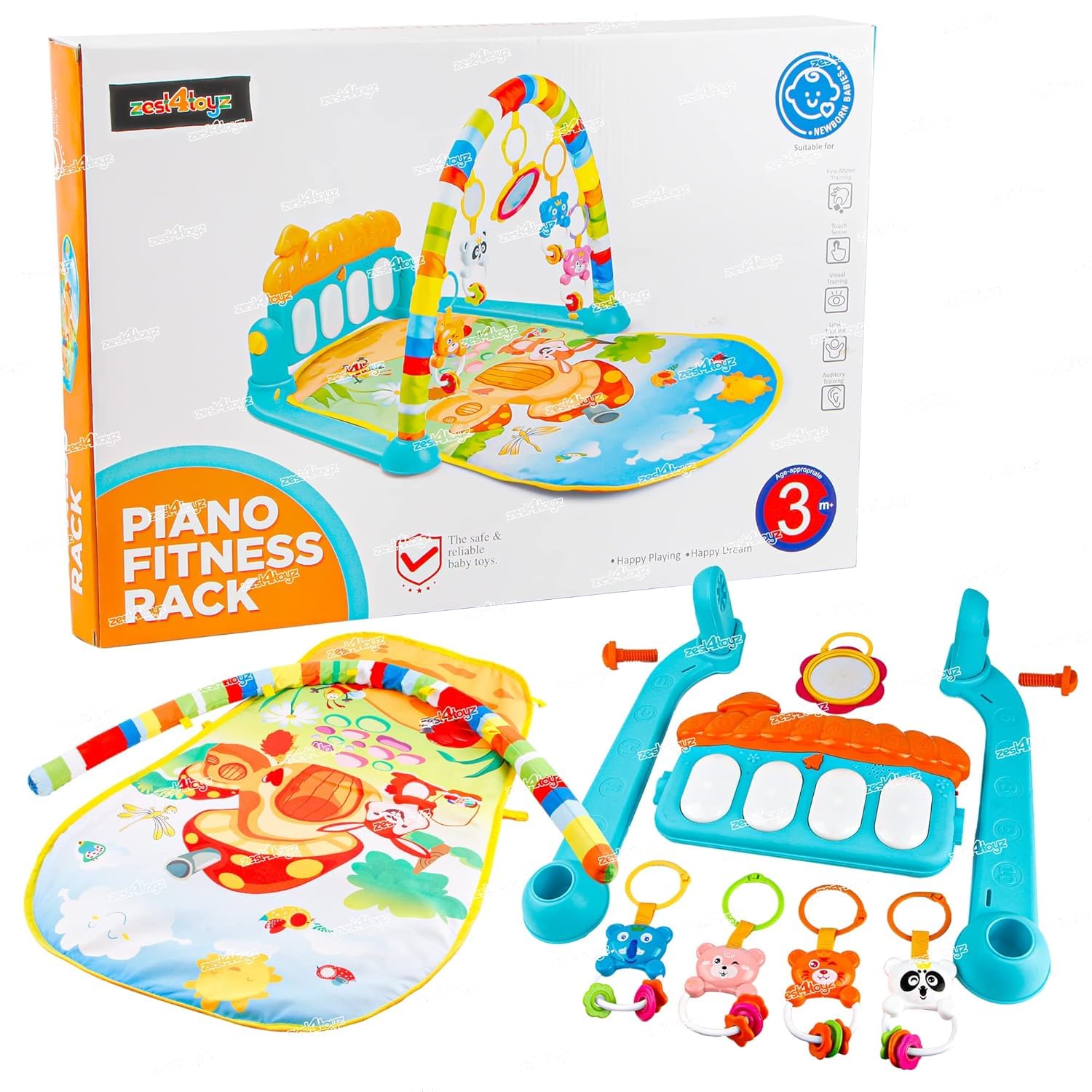 Zest 4 Toyz Baby Gym Piano Play Mat With Music & Fitness Rack with Hanging Rattles Lights Musical Keyboard Mat Piano Multi-Function (up to 2 Year)