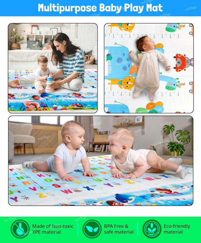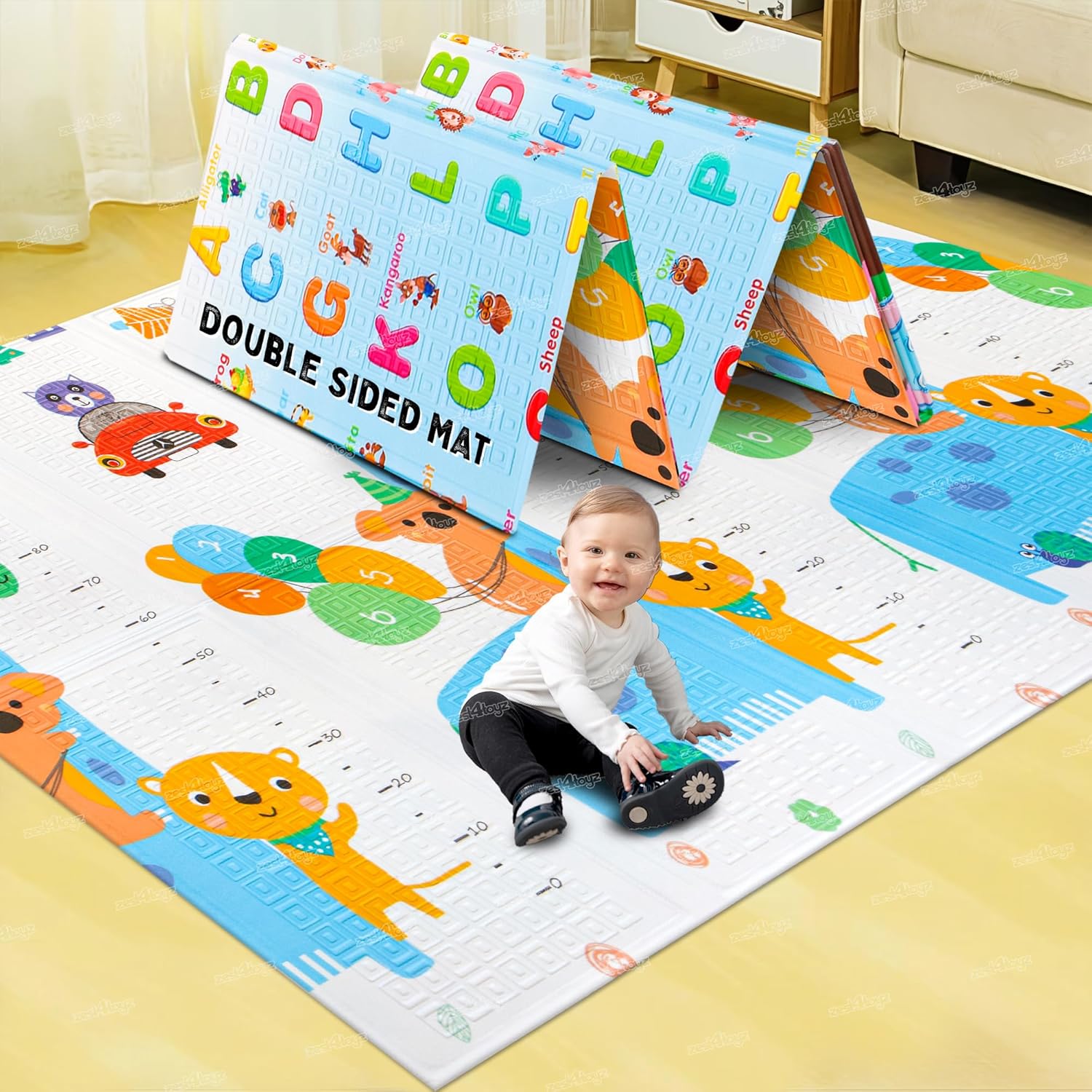 Zest 4 Toyz Play Mat for Baby Double Sided Waterproof & Extra Large Anti-Slip Folding Mats Infant Gym Water Resistant Play